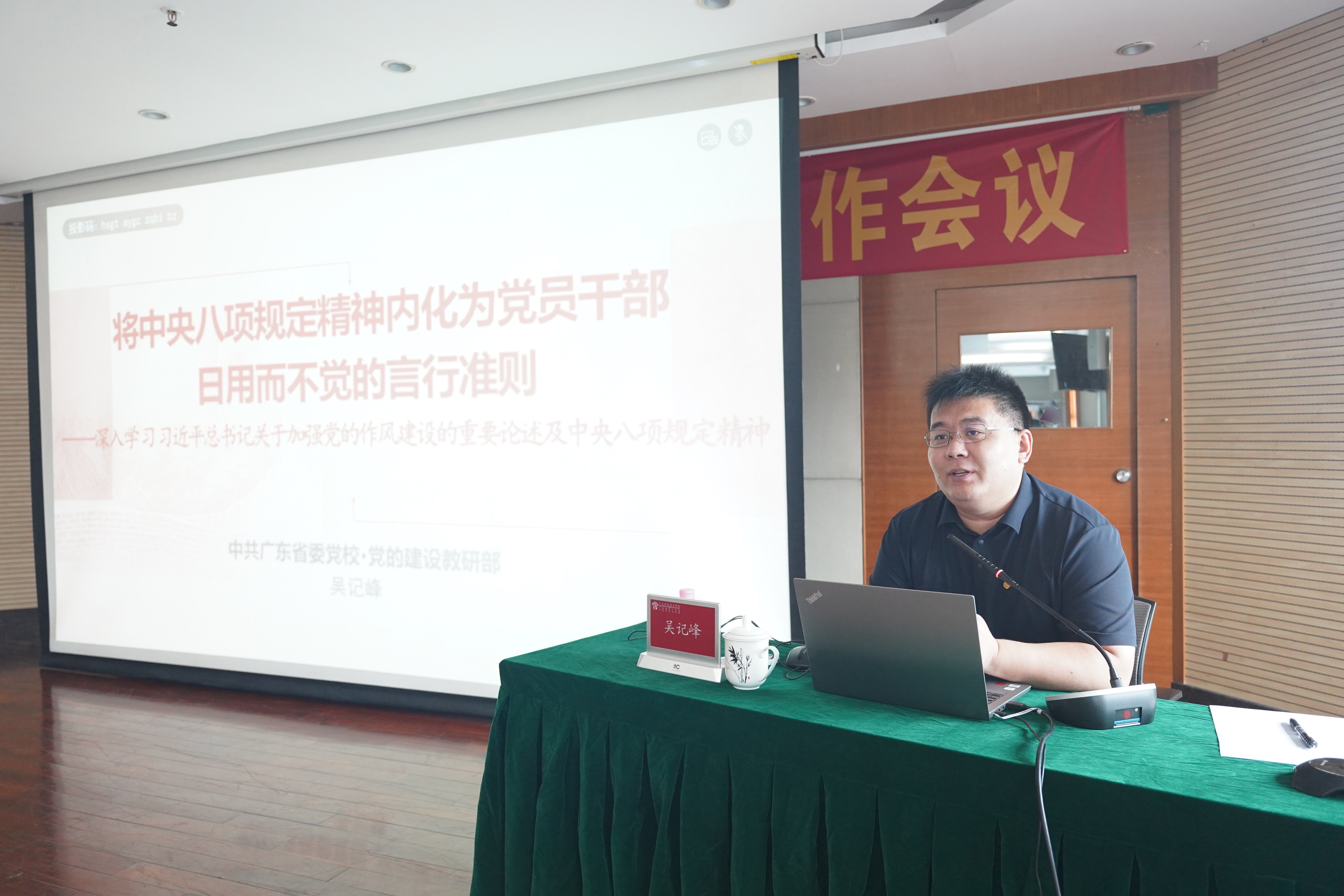 为深入学习贯彻中央八项规定精神,6月20日下午,我院召开深入贯彻中央八项规定精神学习教育专题党课,特别邀请中共广东省委党校(广东行政学院)党的建设教研部副主任吴记峰以《将中央八项规定精神内化为党员干部日用而不觉的言行准则》为题讲授专题党课。