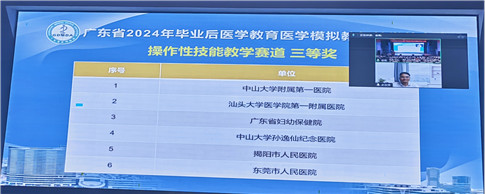 2024年11月5日,广东省毕业后医学教育医学模拟教师教学能力竞赛决赛在中山大学附属第一(南沙)医院举行。此次大赛由广东省医师协会主办,协会毕业后医学教育工作委员会医学模拟教育专业组和中山大学附属第一医院承办。决赛汇聚了广东省内医学模拟教育专业的资深专家评委和来自17个住培基地的24位优秀选手,是广东省内一次高水平的医学模拟教师教学能力的展示和检验。在此次竞赛中,我院儿科王林淦老师团队、麻醉科贺牡丹老师团队表现出色,分别荣获操作性技能教学赛道和情景模拟教学赛道三等奖。