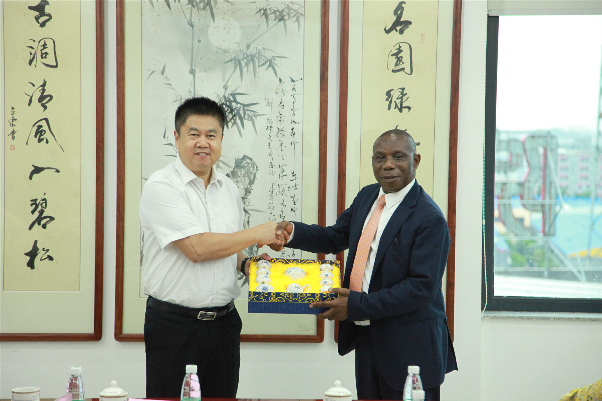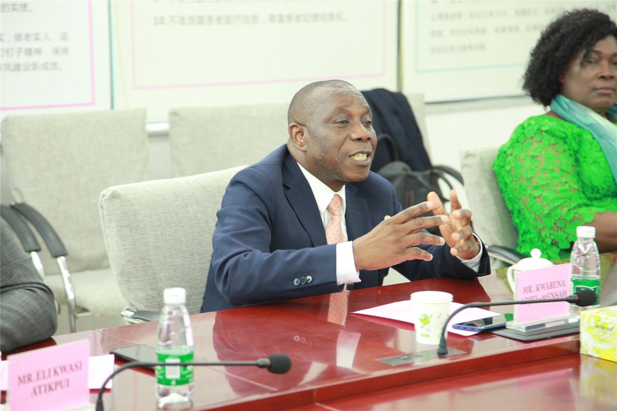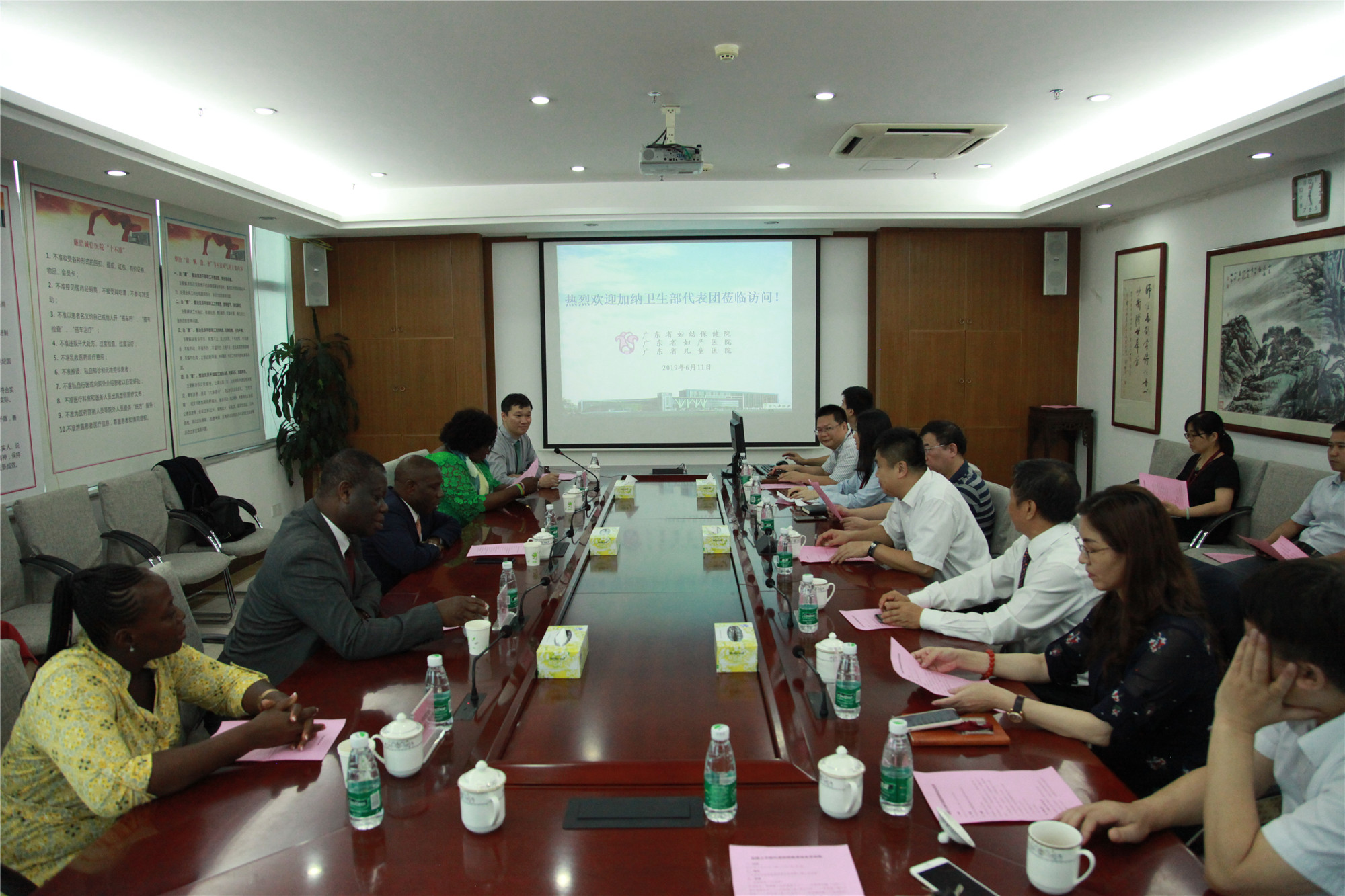 2019年6月11日下午,加纳卫生部大司长Mr.Kwabena Adjei-Mensah 率领的加纳卫生部代表团莅临我院交流访问。省卫生健康委交流合作处主任科员胡文华、广东省卫生医疗对外合作服务中心副主任岳金良、院长黄汉林、党委副书记舒俊、副院长吕水文、刘风华、刘国成会见了访问团一行,我院保健部、医学遗传中心、妇科、产科、新生儿科、中医科、院办等科室代表以及援加纳专家代表参与接待活动。