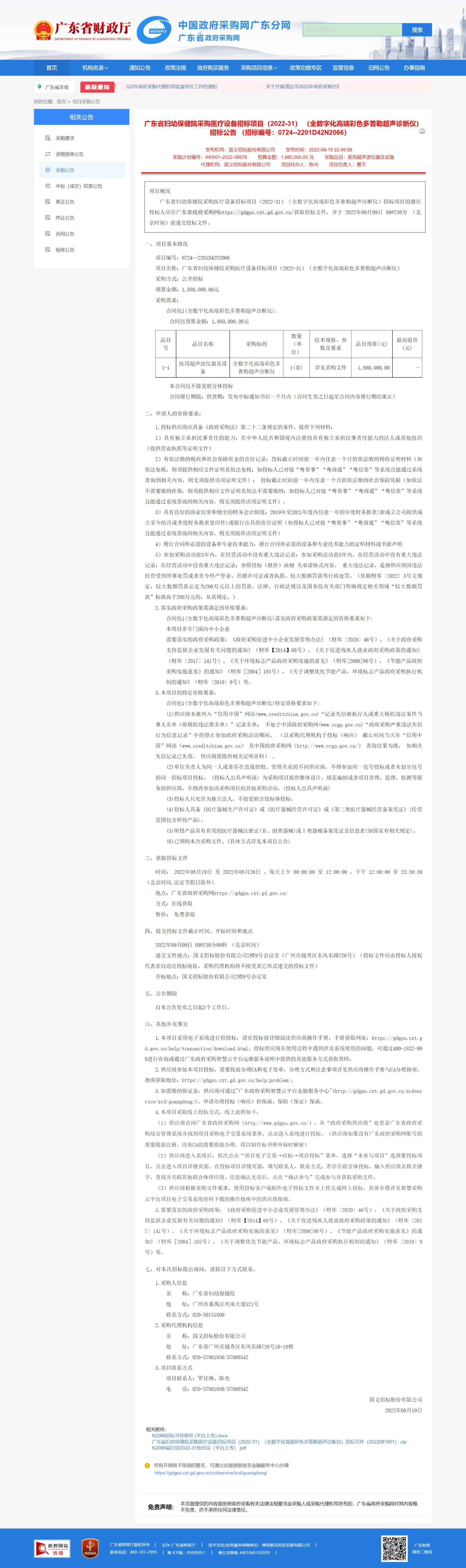 项目名称:广东省妇幼保健院采购医疗设备招标项目(2022-31)(全数字化高端彩色多普勒超声诊断仪)