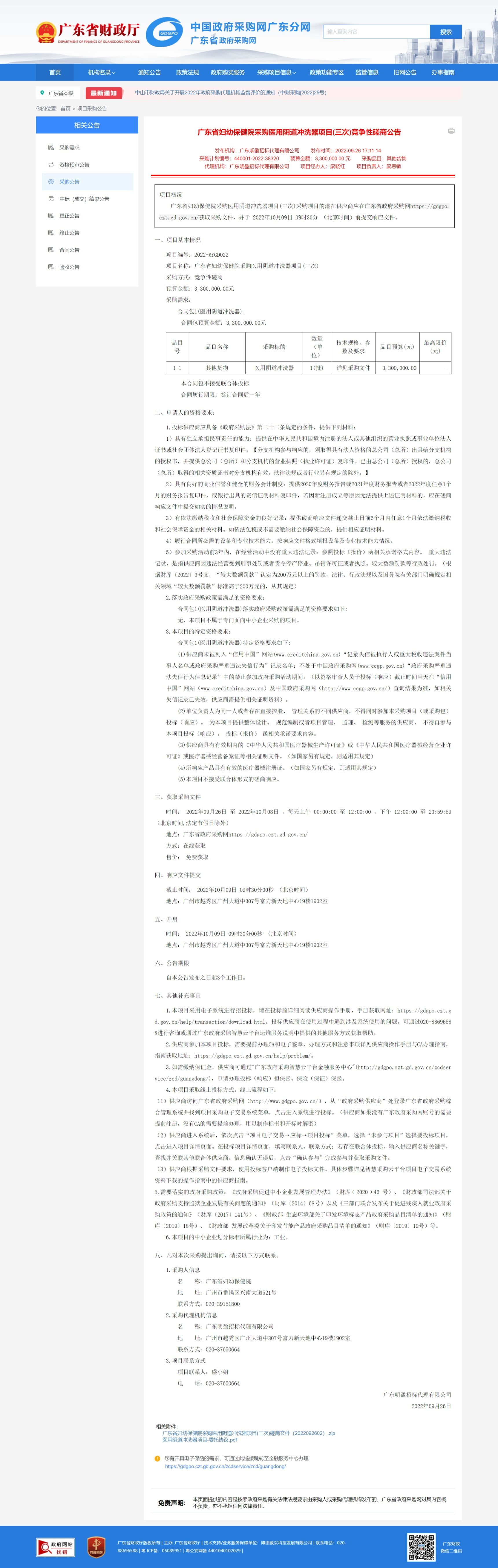 发布机构:广东明盈招标代理有限公司 发布时间:2022-09-26 17:11:14