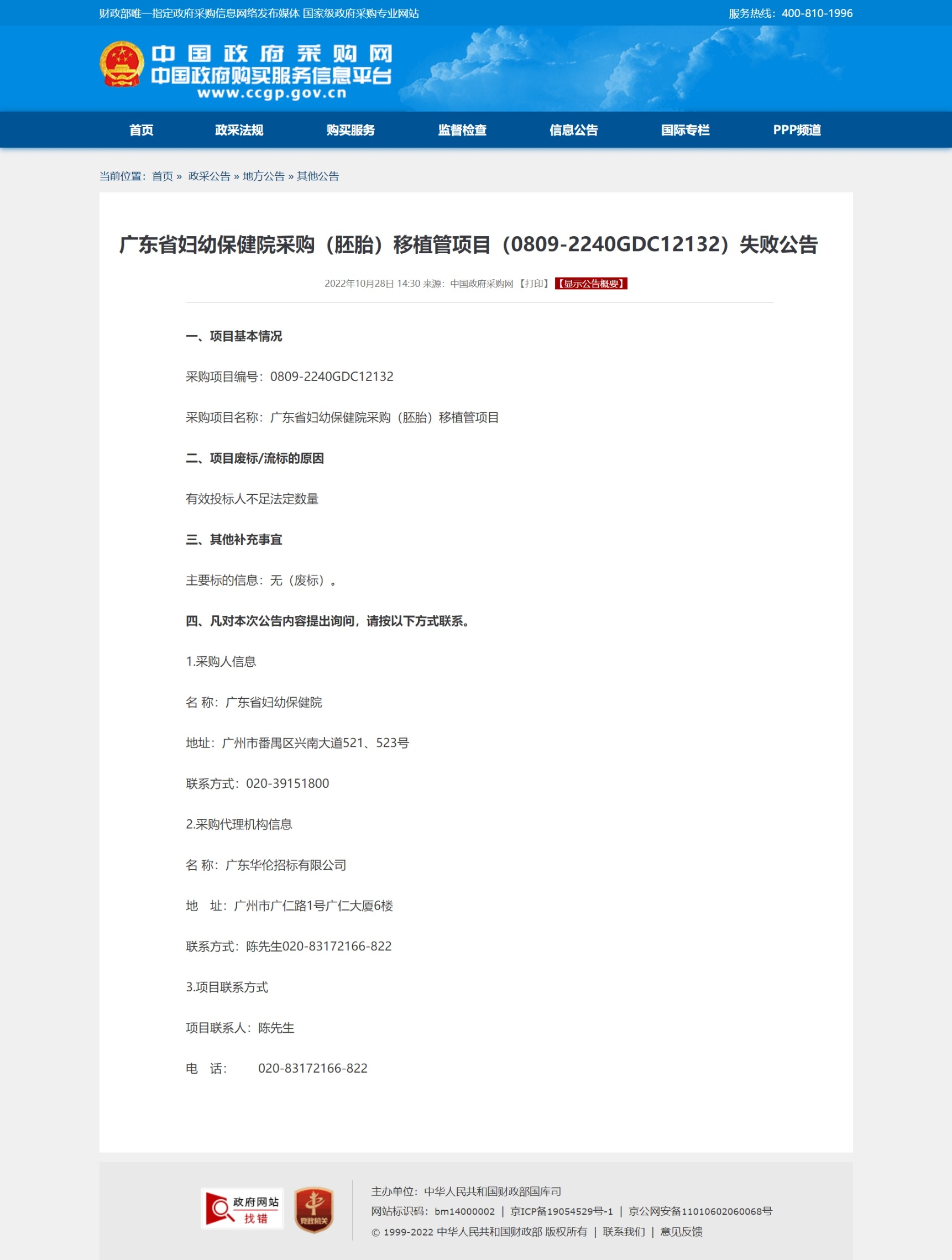 采购项目名称:广东省妇幼保健院采购(胚胎)移植管项目