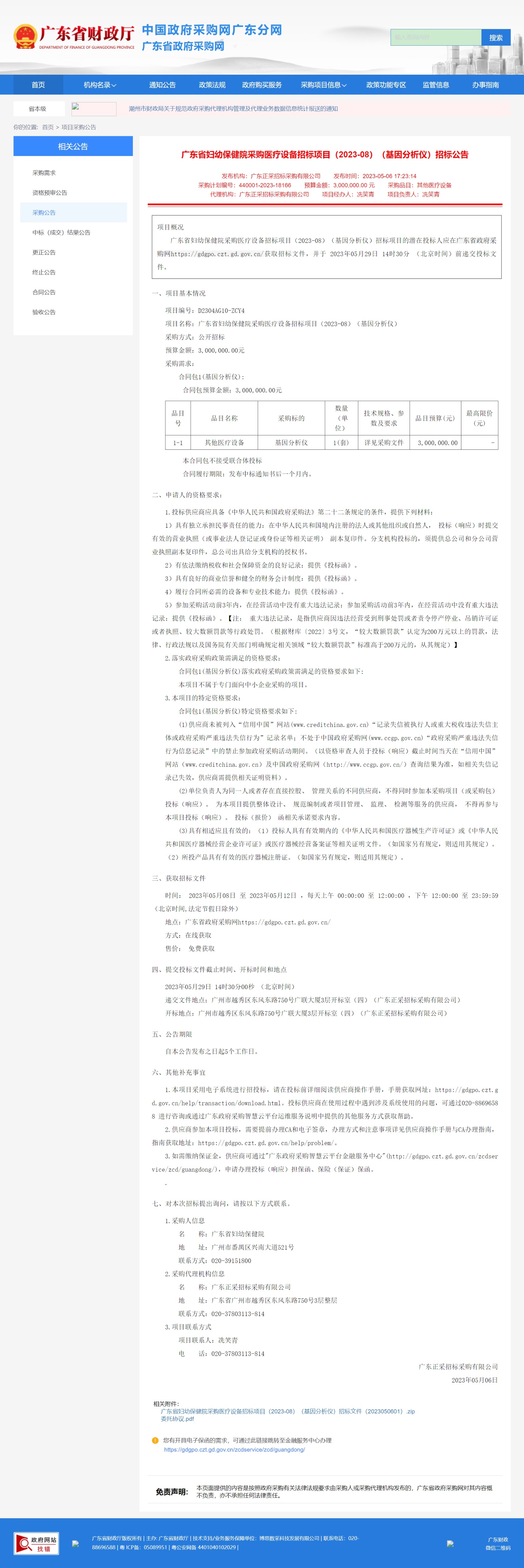 发布机构:广东正采招标采购有限公司 发布时间:2023-05-06 17:23:14